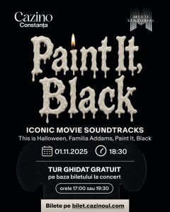 Sâmbătă, pe 1 noiembrie, la Cazinoul din Constanța, Halloween-ul se sărbătorește într-un decor elegant și misterios, la lumina lumânărilor, cu un dress code All Black. Vom asculta piese celebre din filme emblematice care au trecut proba timpului, precum This Is Halloween, Familia Addams și Paint It, Black, Phantom of the Opera sau The Godfather într-o interpretare live, plină de emoție și vigurozitate. Spectacolul va avea loc în sala mare de evenimente de la etajul Cazinoului de la 18:30. Toți cei care cumpără un bilet la spectacolul de sâmbătă beneficiază cu titlu gratuit de turul special de Halloween, în baza biletului de acces la spectacol, de la ora 17:00 sau de la ora 19:30.