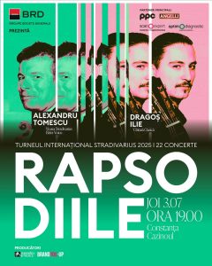 Celebrul violonist Alexandru Tomescu va concerta pe 3 iulie în sala de spectacole a Cazinoului din Constanța în cadrul celei de-a XVIII-a ediții a Turneului Stradivarius. „RAPSODIILE” – o transcripție pentru vioară și chitară clasică semnată de Dragoș Ilie a celebrelor Rapsodii ale lui George Enescu și „Rapsody in Blue” a lui George Gershwin vor răsuna în sala de concerte a Cazinoului din Constanța.