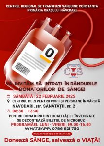 Primăria Orașului Năvodari și Centrul Regional de Transfuzii Sanguine Constanța organizează o nouă acțiune de donare de sânge la Năvodari.