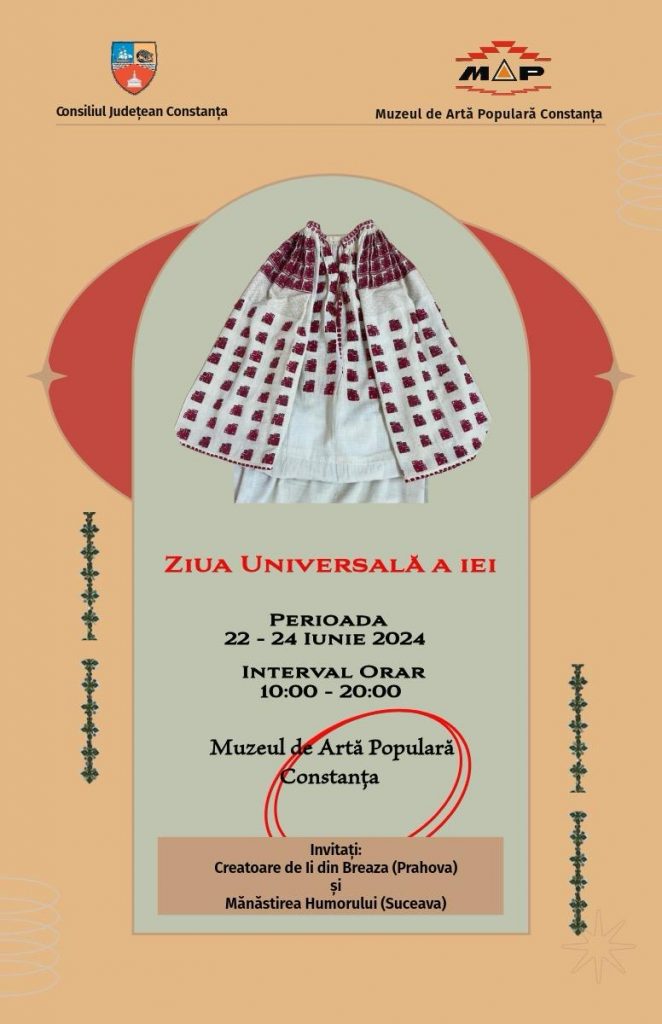 Pentru a celebra cămașa tradițională românească, Muzeul de Artă Populară Constanța va organiza timp de trei zile, în perioada 22 – 24 iunie, evenimentul „Ziua Universală a Iei”.