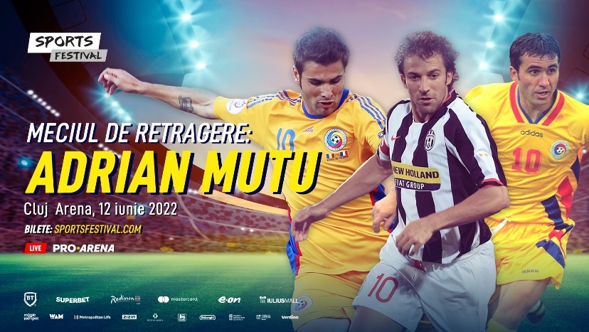 Meciului de retragere al lui Adrian Mutu va avea loc în 12 iunie 2022, pe Cluj Arena, în cadrul celei de-a treia ediții Sports Festival. Fostul număr 10 al Naționalei României va juca împreună cu foști coechipieri și prieteni din România și din străinătate. Biletele la meciul de fotbal pot fi achiziționate de pe site-ul entertix.ro.