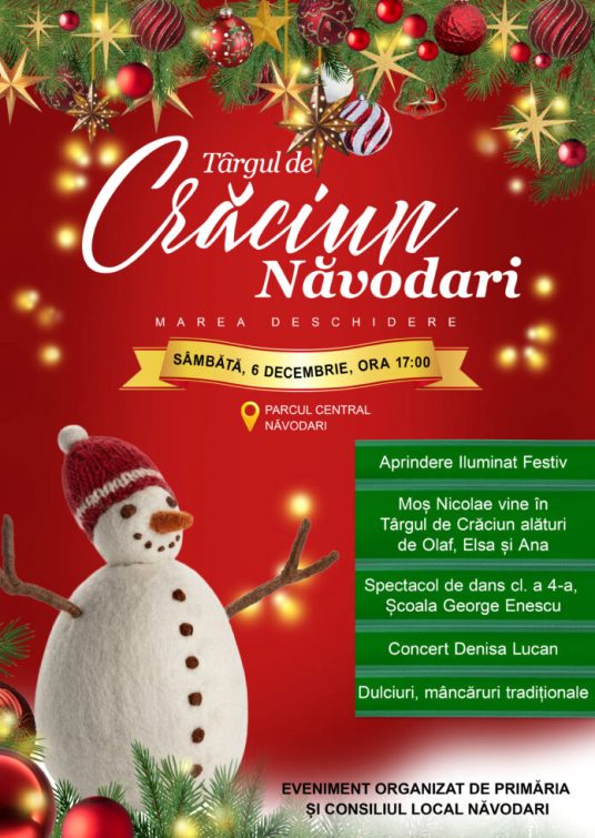 Năvodari dă startul magiei sărbătorilor de iarnă sâmbătă, 6 decembrie, odată cu deschiderea celei de-a doua ediții a Târgului de Crăciun, un eveniment așteptat de copii și adulți deopotrivă. Atmosfera festivă va cuprinde orașul prin decoruri luminoase, spectacole interactive, personaje de poveste și concerte susținute de artiști locali.