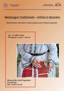În perioada 25-27 iulie, Muzeul de Artă Populară Constanța, instituție finanțată de Consiliul Județean Constanța, organizează manifestarea „Meșteșuguri tradiționale – utilitar și decorativ”.