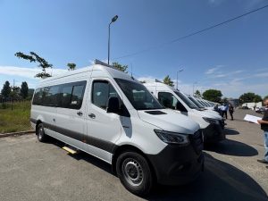 Ieri, 24 iulie 2025, a avut loc livrarea oficială a microbuzelor electrice către cele 25 de unități administrativ-teritoriale beneficiare din județul Constanța, destinate transportului elevilor din mediul rural.