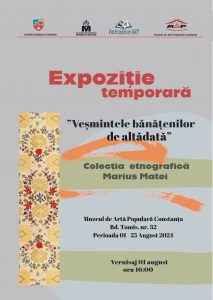 Muzeul de Artă Populară din Constanța vă invită joi, 1 august, de la ora 16.00, la vernisajul expoziției „Veșmintele bănățenilor de altădată”, pentru a admira ansambluri vestimentare din Colecția Etnografică Marius Matei.