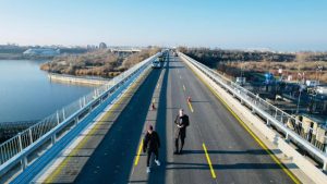 Astăzi s-a făcut trasarea provizorie a podului cu cele trei benzi reversibile de circulație, urmând ca la finalizare (montarea stâlpilor de iluminat, a elementelor de semnalizare și executarea rosturilor de dilatare) să se efectueze marcajele rutiere definitive!