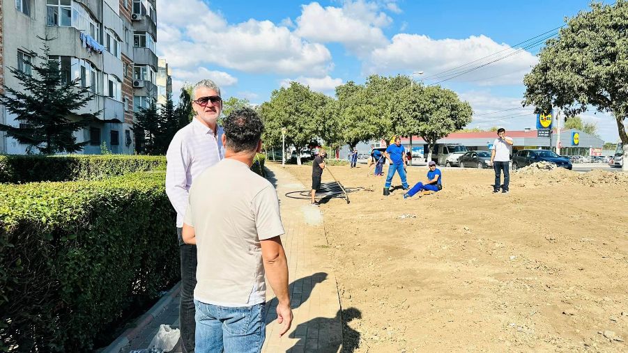 „Pregătim noi spații verzi pe strada Constanței, zona blocurilor H!S-a completat întreaga zonă cu pământ, am montat sistemul de irigații, urmând apoi să se aducă și să se amenajeze rulourile de gazon!