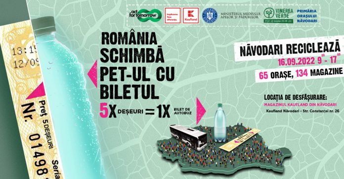 Campania “Schimbă PET-ul cu Biletul” ajunge, vineri, în Năvodari și în alte 64 de orașe din toate județele țării.
