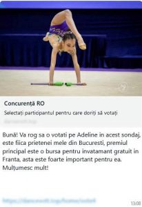Mesajul arăta astfel: „Bună! Te rog să o votezi pe Adeline în acest sondaj. Este fiica prietenei mele, iar premiul este o bursă pentru studii în Franța. Mulțumesc mult!” urmat de un link malițios.