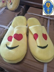 În data de 08 noiembrie 2023, inspectorii vamali din cadrul Biroului Vamal de Frontieră Constanța Sud – Direcția Regională Vamală București, au descoperit într-un container sosit din China, având ca destinație o societate comercială cu sediul în Ucraina, 18.500 perechi papuci de casă, bunuri susceptibile de a aduce atingere dreptului de proprietate intelectuală pentru marca SMILEY/EMOJI.