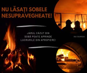Peste 50 de incendii s-au produs, în perioada ianuarie 2023 – ianuarie 2024, în zona de competență a ISU Giurgiu, din cauza sobelor, a coșurilor de fum, a burlanelor defecte, necurățate de funingine sau neprotejate termic față de materialele combustibile din apropiere.