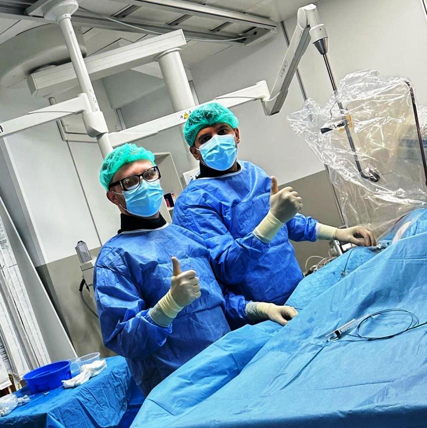 Una dintre procedurile efectuate a vizat un pacient în vârstă de 68 de ani, cu istoric de afecțiuni cardiace și multiple stentări coronariene. Acesta s-a prezentat cu durere toracică persistentă, iar coronarografia a evidențiat o leziune critică prin restenoza intrastent, la nivelul stenturilor implantate anterior (în urmă cu 8 luni).
