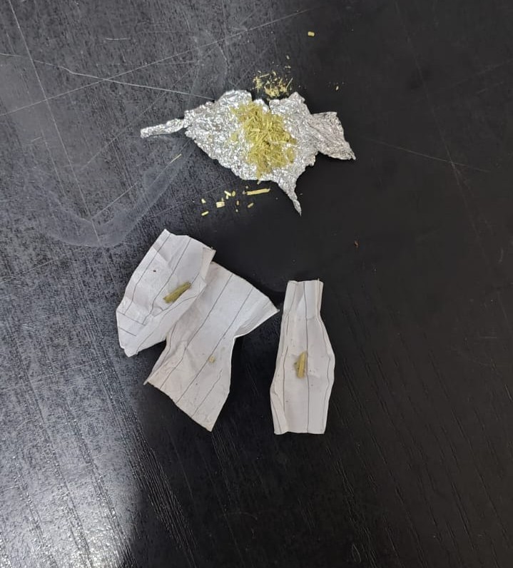 În urma controlului, jandarmii au descoperit asupra tânărului un pachețel de staniol în care se afla o substanță vegetală, de culoare verde-oliv, cu miros specific și alte trei pachețele de hârtie care conțineau resturi din aceeași substanță.
