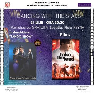 „Dancing with the stars”, proiectul organizat de Direcția de Cultură, Educație, Sport, Turism din cadrul Primăriei Municipiului Constanța și Asociația Talent-Art Constanța, este un bun prilej pentru seri de vară memorabile. Joi, 21 iulie, de la ora 20:30, aveți ocazia să vizionați drama americană „Take the Lead” și să participați la spectacolul de dans „Tango Show”. Locul de desfășurare este plaja Reyna din cartierul Faleză Nord.