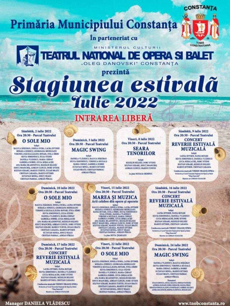Până pe 15 septembrie, Teatrul National de Opera si Balet „Oleg Danovski” împreună cu Primăria Constanța vă invită la evenimente culturale remarcabile, organizate în weekend, pe terasa teatrului sau pe scena special amenajată în parc.