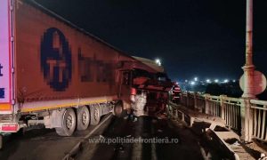 Soferul a pierdut controlul asupra ansamblului rutier, lovind parapetii podului, ceea ce a dus la blocarea traficului pe ambele sensuri.