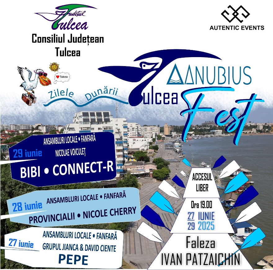În perioada 27-29 iunie 2025, Faleza „Ivan Patzaichin” din Tulcea intră în ritmul muzicii autentice în cadrul unuia dintre cele mai așteptate evenimente ale verii: Tulcea Danubius Fest. Organizat de Consiliul Județean Tulcea și Autentic Events, evenimentul promite un weekend de neuitat, cu acces liber pentru toți participanții.