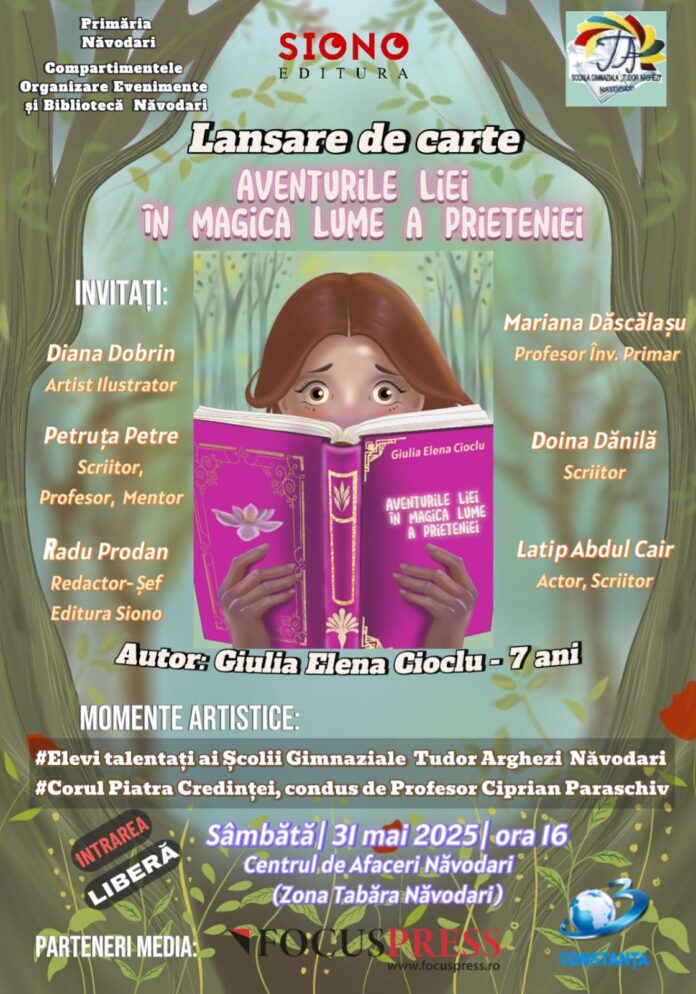 Lansarea de carte: „Aventurile Liei în magica lume a prieteniei”, o poveste văzută prin ochii unei fetițe curajoase și creative, în vârstă de doar 7 ani, Giulia Elena Cioclu.