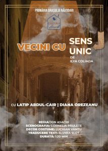 ????“Vecini cu sens unic”, o piesă de teatru pusă în scenă de regizorul Ion Asachi, în rolurile pricipale Latip Abdul Cair și Diana Orezeanu, explorează relația dintre doi tineri Emily Webb și George Gibbs, vecini într-un orășel pierdut din America.