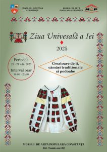 Muzeul de Artă Populară Constanța, instituție finanțată de Consiliul Județean Constanța, organizează, în perioada 21-24 iunie, manifestarea „Ziua Universală a Iei”, la care vor participa creatoare de ii și cămăși, dar și de podoabe tradiționale din Muntenia (Breaza, județul Prahova), Bucovina (Mănăstirea Humorului, județul Suceava), Transilvania (Salva, județul Bistrița-Năsăud) și Dobrogea.